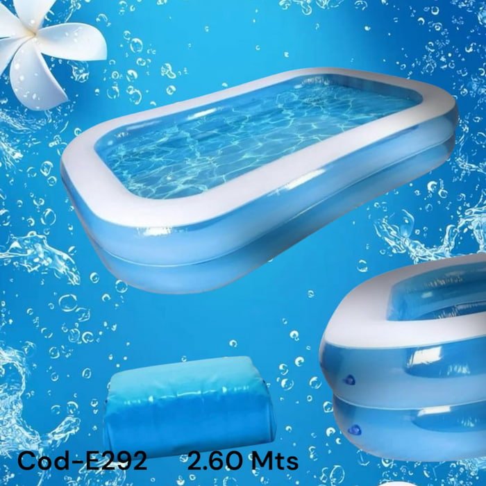 Con materiales de primera calidad, nuestra alberca es resistente a desgastes y temperaturas extremas, ofreciendo una excelente inversión para tus días de recreación. Su tamaño generoso de 2.60 metros permite espacio suficiente para moverse cómodamente, brindando una experiencia relajante tanto para niños como adultos. Además, su diseño robusto garantiza que pueda soportar el uso constante sin perder su forma o funcionalidad.