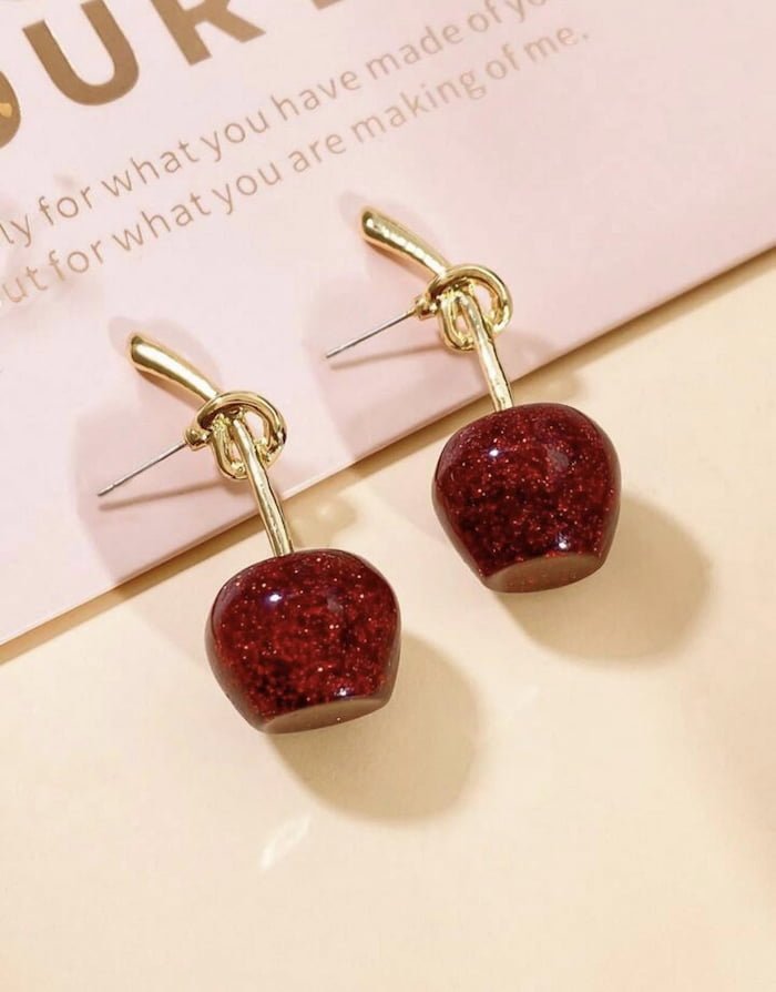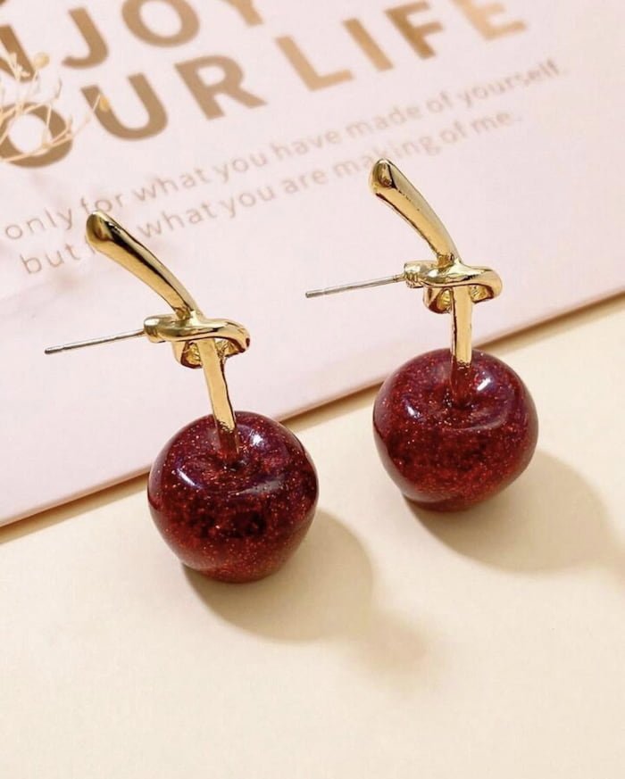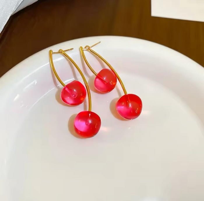 Aretes de cereza con un diseño cute y vibrante. Perfectos para añadir un toque fresco y divertido a tu look.