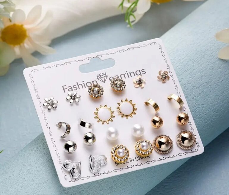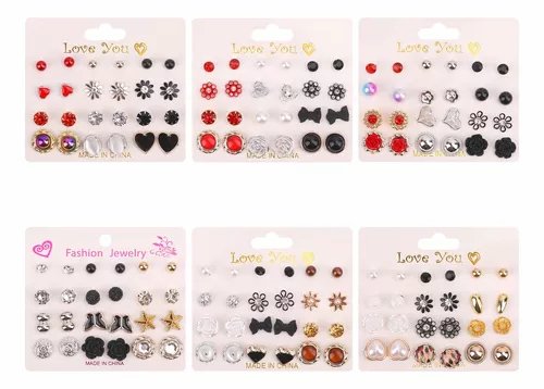 Nuestra colección de aretes con 12 piezas es perfecta para cualquier amante de la moda. Cada set contiene diferentes diseños y colores, asegurando que siempre tengas el par adecuado para cada ocasión.