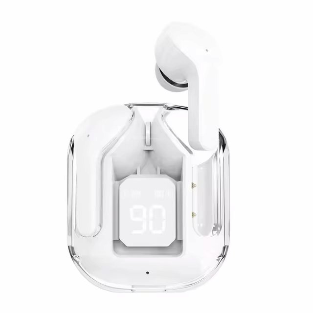 Estos audífonos vienen con un moderno diseño transparente y una pantalla digital LED que muestra el nivel de batería. No solo son estilizados, sino que también son prácticos, permitiendo controlar el estado del dispositivo de un vistazo.