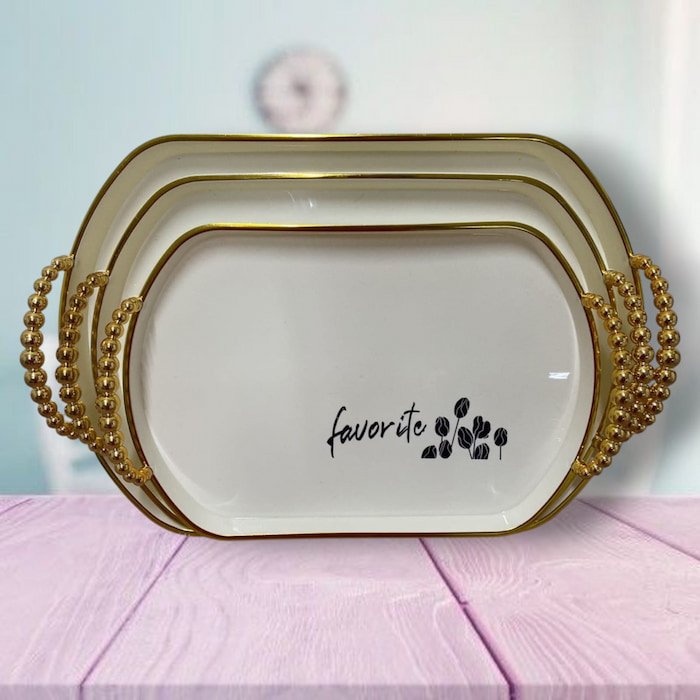 Bandeja decorativa ovalada mediana de plástico resistente y de buena calidad, con un diseño elegante que realza cualquier ambiente o mesa.