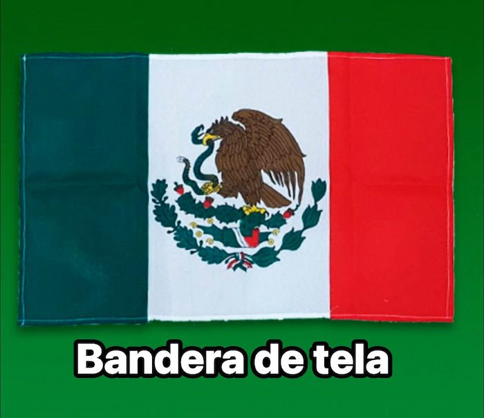 Bandera tricolor de tela, mide aproximadamente 70 cm. Fabricada con materiales de buena calidad, ideal para decoración en interiores o eventos.