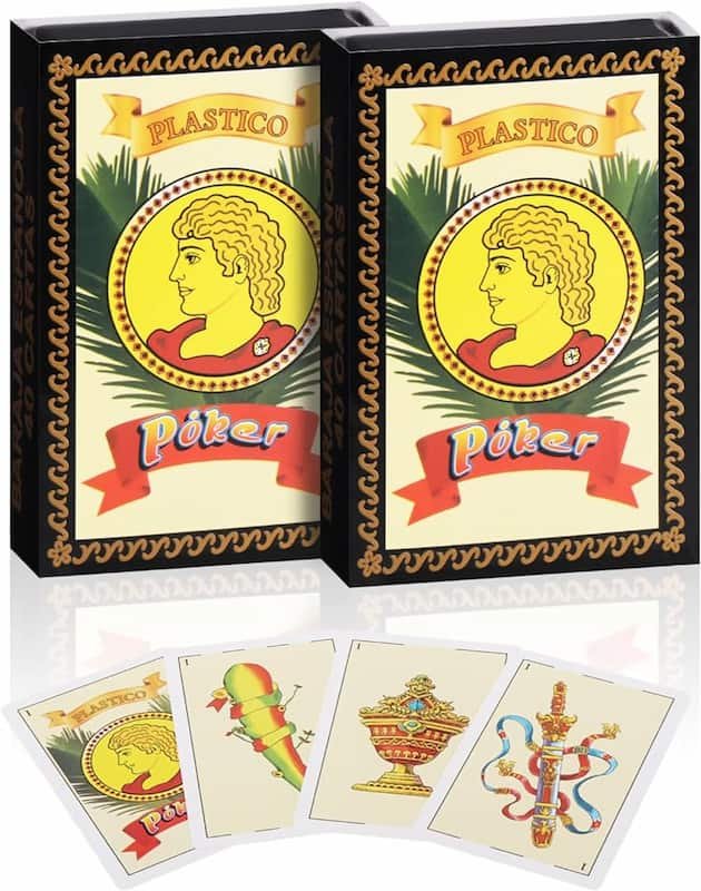 Las **barajas premium de plástico con estuche** ofrecen una experiencia de juego duradera y elegante. Fabricadas en plástico resistente, son ideales para partidas frecuentes y resistentes a la humedad y al desgaste. Vienen en un estuche elegante que asegura su protección y almacenamiento adecuado. Perfectas para juegos de cartas en cualquier ocasión.