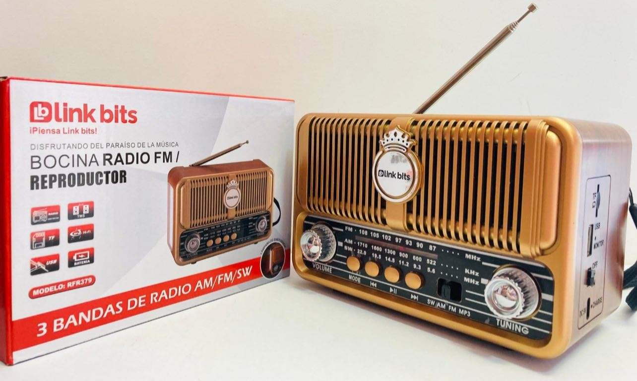 Bocina Radio FM 4 Banda de Radio AM, compacta y versátil, diseñada para brindarte una experiencia de sonido clara y potente. Escucha tus estaciones de radio favoritas en AM y FM, ideal para disfrutar de música y noticias en cualquier lugar. Su diseño portátil la hace perfecta para llevar a todas partes.