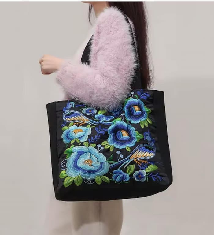 Esta bolsa no solo es visualmente atractiva. Su diseño práctico incluye un amplio compartimiento principal donde podrás organizar tus pertenencias de manera eficiente. Las asas son cómodas y resistentes, facilitando su transporte. Además, su diseño bordado añade un toque de sofisticación que combinará perfectamente con cualquier atuendo, ya sea casual o formal.