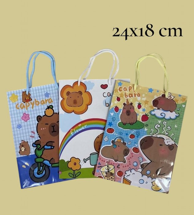 Bolsa de regalo chica con adorables diseños infantiles de dibujos animados, elaborada en papel grueso y resistente de excelente calidad. Mide 24 × 18 cm, ¡ideal para dar un detalle especial con mucho estilo!