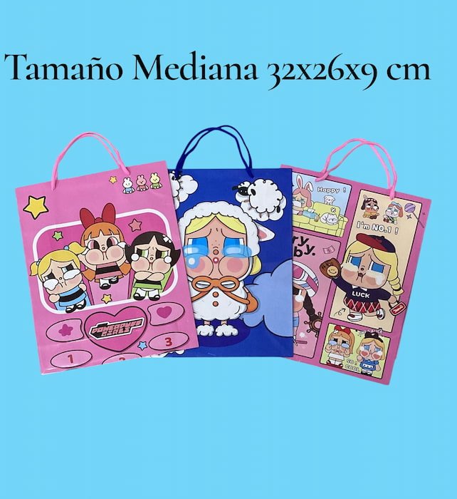 Bolsa de regalo infantil 32*26 cm con divertidos dibujos animados, hecha de papel grueso y resistente de excelente calidad. ¡Súper linda y perfecta para sorprender en cualquier ocasión especial!