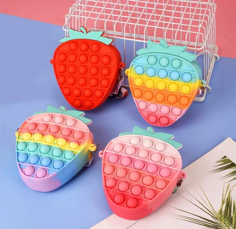 La BOLSA POP IT en forma de fresa no es solo un accesorio; es una combinación perfecta de diversión y estilo. Con su llamativo diseño de fresa, esta bolsa se destaca por su capacidad para entretener y ser funcional al mismo tiempo.