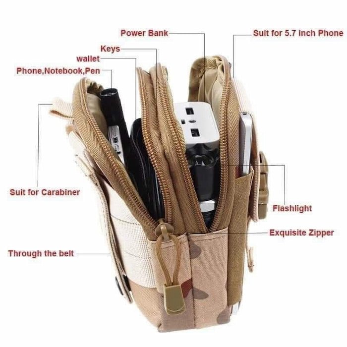 Diseño Robusto para una Durabilidad InigualableConstruida con materiales de alta calidad y resistentes al agua, la Bolsa Táctica P/cabalero está diseñada para soportar las exigencias de las aventuras al aire libre. Ya sea que estés caminando por terrenos difíciles o navegando por paisajes urbanos, esta bolsa promete mantener tus pertenencias seguras y protegidas. Las costuras reforzadas y los cierres metálicos resistentes garantizan que esta bolsa táctica te servirá durante años, incluso en las condiciones más duras.Almacenamiento Amplio y FuncionalLa Bolsa Táctica P/cabalero está ingeniosamente diseñada con múltiples compartimentos para una organización óptima. Con amplios espacios para tus esenciales, incluyendo equipo táctico, herramientas, electrónica y objetos personales, puedes acceder fácilmente a todo lo que necesites en un momento dado. Los bolsillos adicionales y la cinta MOLLE permiten opciones de almacenamiento personalizables, lo que te permite acoplar fundas o equipo extra para esas salidas prolongadas.