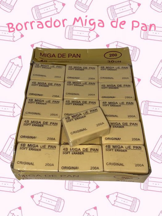 Borrador de miga de pan, ideal para la escuela. Borra sin dejar manchones y es de excelente calidad.
