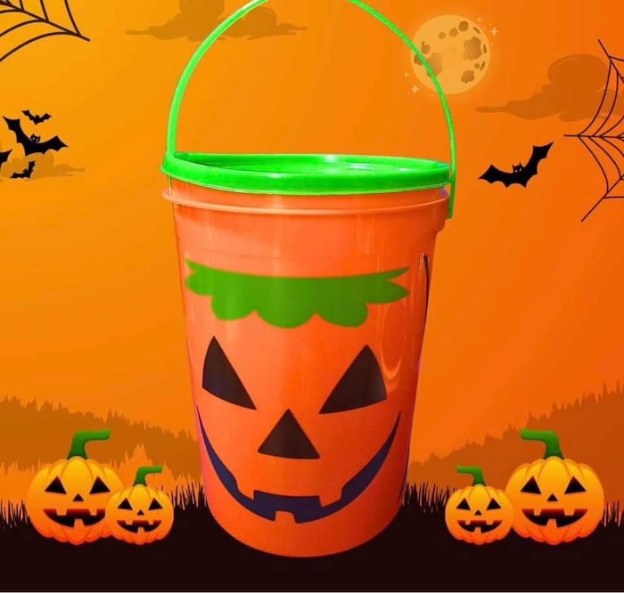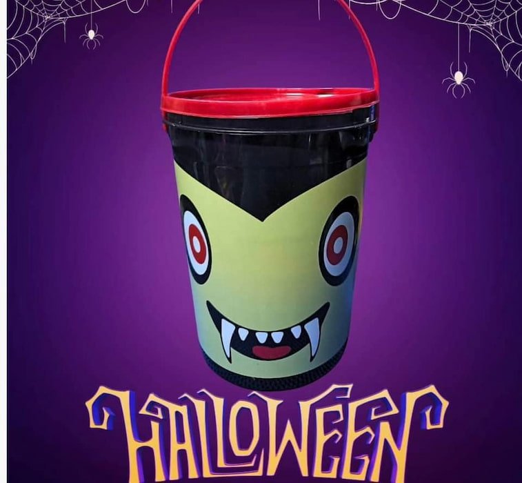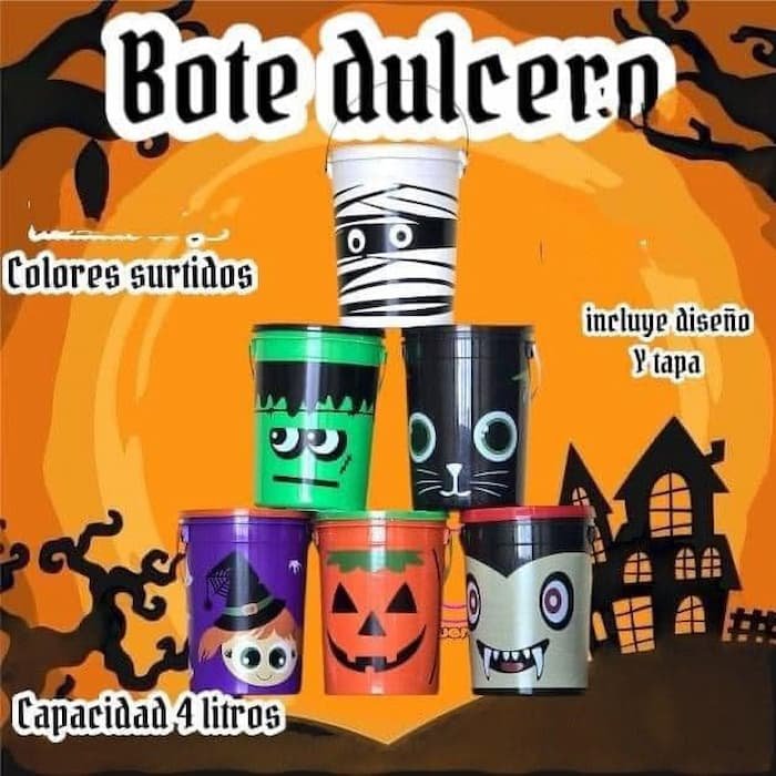 Bote dulcero de Halloween de 4 litros, ideal para recolectar golosinas. Con diferentes diseños coloridos y divertidos, tipo cubeta, es perfecto para fiestas y celebraciones. Su capacidad amplia permite llevar una gran cantidad de dulces, haciendo que cada Halloween sea aún más especial y emocionante para los pequeños. ¡Una opción divertida y práctica para disfrutar de la temporada!