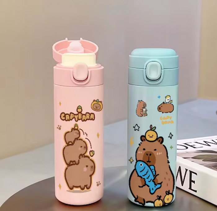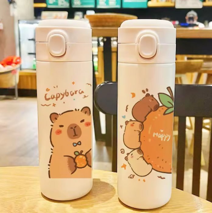 Bote térmico Capibara de 500 ml, mantiene tus bebidas frías o calientes por horas con un diseño tierno y funcional.