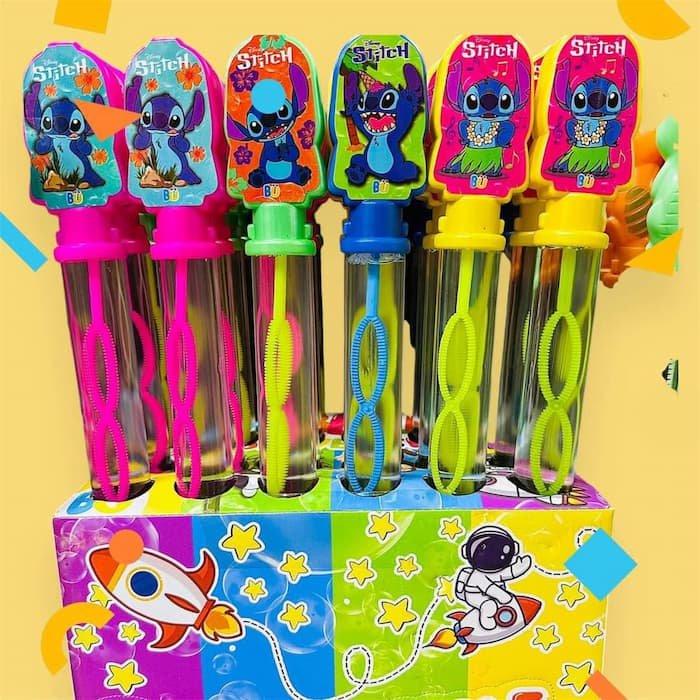 La burbuja de Stitch es un envase de jabón para hacer burbujas, con un diseño exclusivo del personaje de Disney, Stitch. Viene en un empaque colorido y divertido que atrae a los niños, y permite crear burbujas de manera fácil y divertida, ideal para juegos al aire libre o fiestas infantiles.