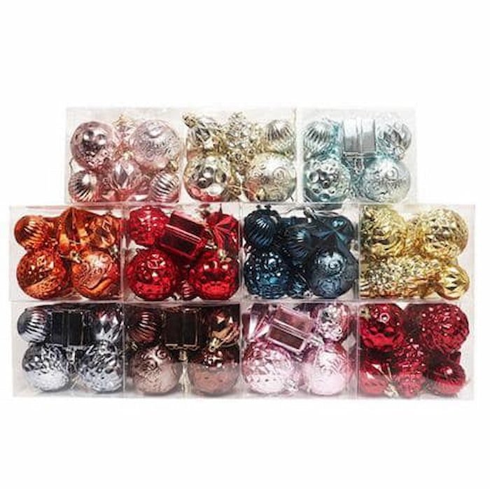 Esferas de diferentes diseños, perfectas para decorar el pino de Navidad. Con variedad de colores, texturas y detalles festivos, crean un ambiente único y lleno de magia en tu árbol navideño.