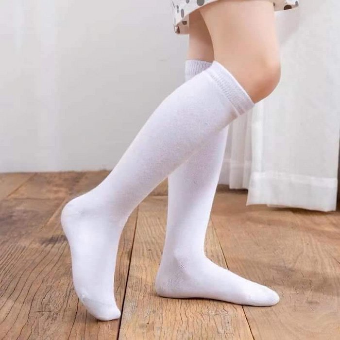 Calceta larga escolar en color blanco, ideal para la escuela. De textura suave y buena calidad para mayor comodidad, 9-12 años.