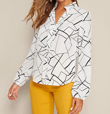 El estampado de rayas negras con un toque geográfico aporta un aire contemporáneo y fresco a la camisa. Las líneas bien definidas crean un efecto visual interesante, convirtiéndola en una opción llamativa para cualquier ocasión. El cuello notch no solo añade un toque de elegancia, sino que también brinda un ajuste cómodo, permitiendo libertad de movimiento.