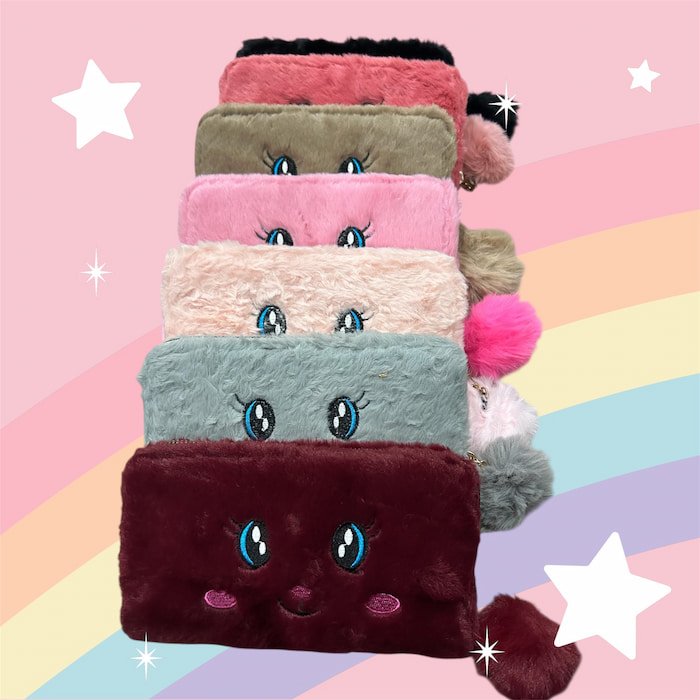 Cartera bonita con diseño tierno de peluche, suave al tacto y con detalles encantadores. Ideal para llevar lo esencial con estilo y dulzura.