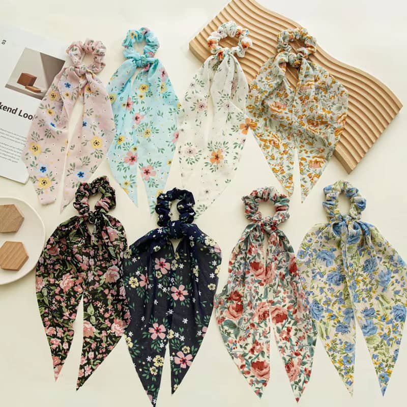 - Diseño con lazo floral: Cada coletero está adornado con una cinta larga con estampado floral, que agrega un toque de belleza y sofisticación a tu peinado.