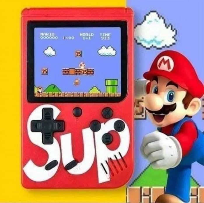 Consola SUP con 400 juegos retro clásicos. Incluye batería recargable, cable USB, conexión a TV y hasta 6 horas de juego. Compacta, ligera y fácil de usar.