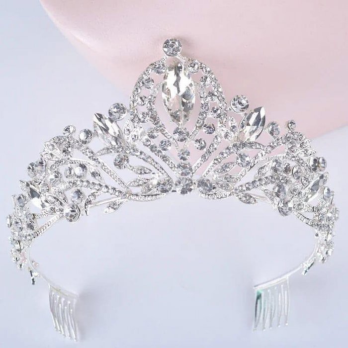 Corona elegante con finos detalles de cristal, ideal para resaltar en eventos especiales. Brilla con luz propia y ofrece un ajuste cómodo y seguro.