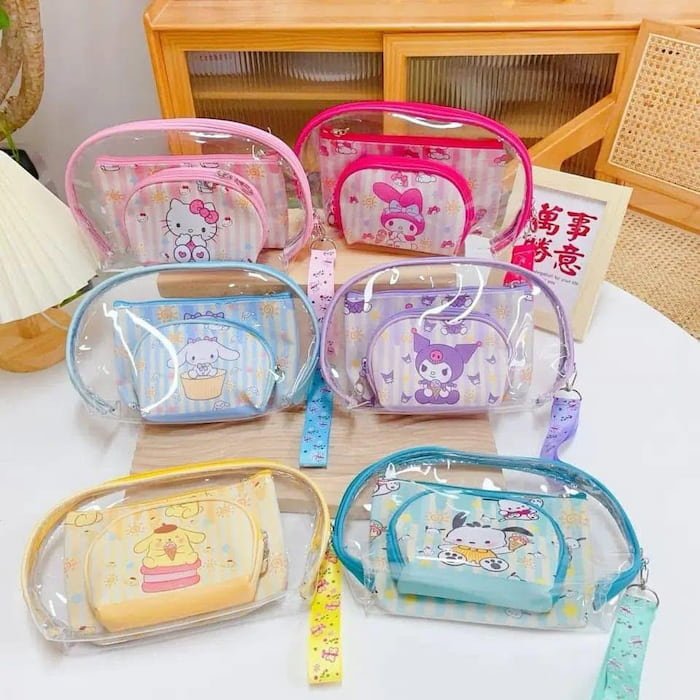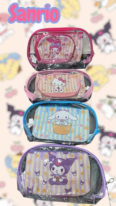 Si eres fanático de Sanrio, este set de cosmetiquera es perfecto para ti. Incluye tres piezas súper bonitas que destacan por su diseño exclusivo y la representación de tus personajes favoritos. Cada cosmetiquera ha sido cuidadosamente fabricada para combinar estilo y practicidad, convirtiéndola en un accesorio ideal para tu día a día.