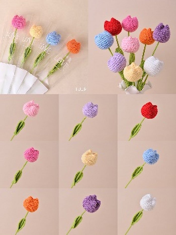 Ilumina tu espacio con nuestros exquisitos tulipanes de crochet, elaborados meticulosamente a mano con hilo suave de alta calidad. Cada tulipán está diseñado para agregar un toque de elegancia y encanto a cualquier hogar o evento. Perfectos como un regalo único o como una impresionante pieza central, estas duraderas y vibrantes flores de crochet son perfectas para cualquier ocasión. Disponibles en una variedad de colores, nuestros tulipanes de crochet son una hermosa manera de celebrar la belleza de la naturaleza sin la molestia del mantenimiento.