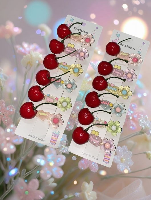 La calidad es nuestra prioridad número uno. Cada pasador está fabricado con materiales duraderos que aseguran que mantendrán su forma y detalle visual incluso tras un uso prolongado. La pinza del pasador está diseñada para ser fácil de usar, ofreciendo un agarre firme sin dañar tu cabello. Cada docena de pasadores Cherry refleja la atención al detalle y el compromiso con la satisfacción del cliente. Compra con confianza, sabiendo que llevas un producto de alta calidad y atractivo innegable.