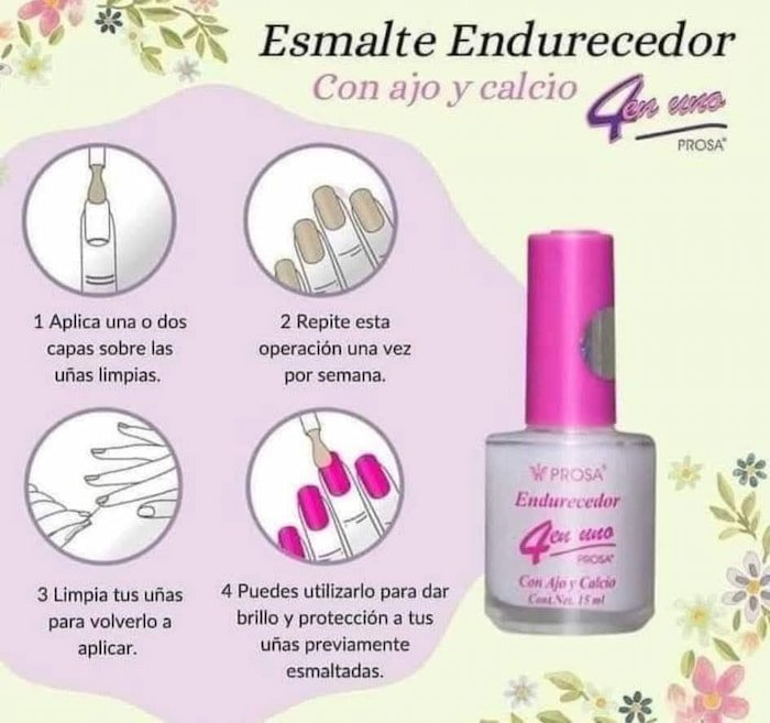 El esmalte Endurecedor 4 en 1 Prosa ajo y calcio 15 ml de Prosa ayuda a tus uñas para fortalecerlas y ayudar a evitar que se quiebren.
