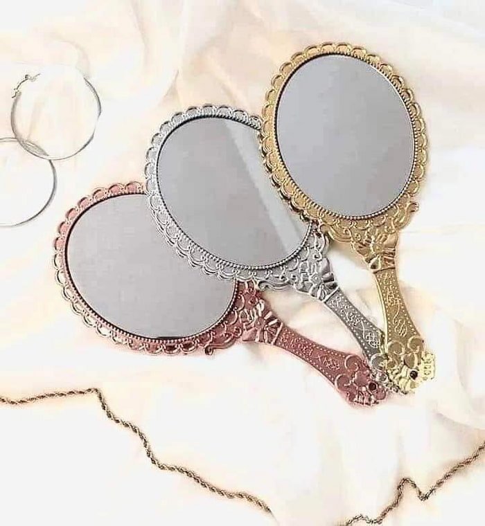 El espejo vintage de mano es un accesorio elegante con un diseño clásico y detallado. Perfecto para llevar en el bolso o usar en casa, ofrece una visión clara y precisa mientras aporta un toque de estilo retro a tu rutina de belleza.