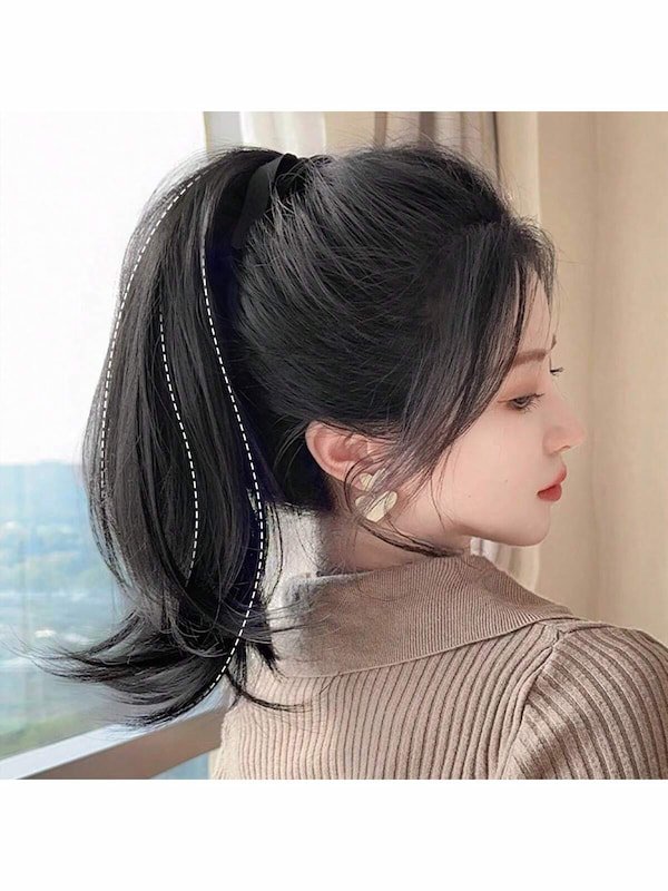 El «pelo postizo sedoso con cordón» es una extensión de coleta de fibra sintética resistente al calor, ideal para añadir longitud y ondas. Con 35 cm de largo y color negro, proporciona un acabado natural y versátil.