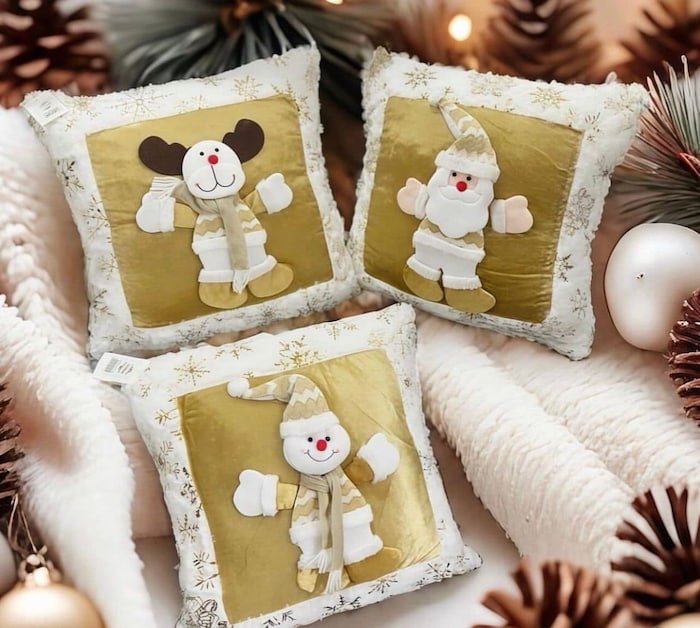 Forro de cojín navideño, perfecto para darle un toque festivo y acogedor a tu sala durante esta temporada. Diseño ideal para decorar con espíritu navideño.