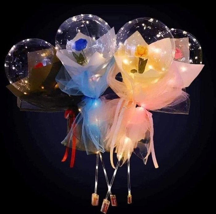 Globo LED con rosa, un detalle romántico y brillante que aporta un toque único y mágico a cualquier celebración.