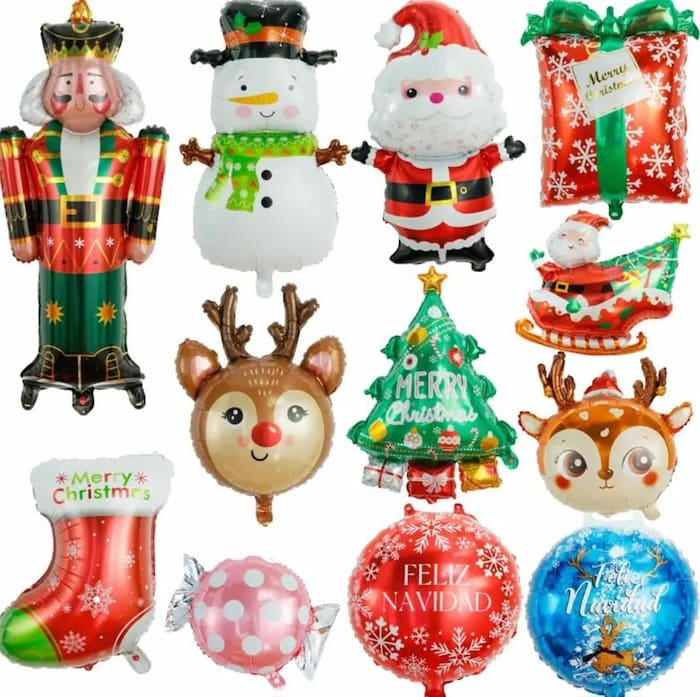 Globos navideños decorativos, ideales para dar un toque festivo a tu hogar. Con diseños alegres y colores tradicionales, perfectos para celebrar la temporada navideña con estilo y alegría.