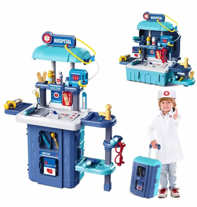 Juguete Kit Médico Mod. 8123BP, con instrumentos médicos de juguete para que los niños jueguen a ser doctores. Ideal para fomentar el aprendizaje y la empatía mientras se divierten.