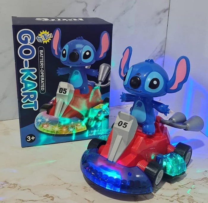 Juguete Stitch con luz LED, ideal para los fanáticos del personaje. Funciona con pilas y emite luces llamativas. Perfecto para decoración o juego.