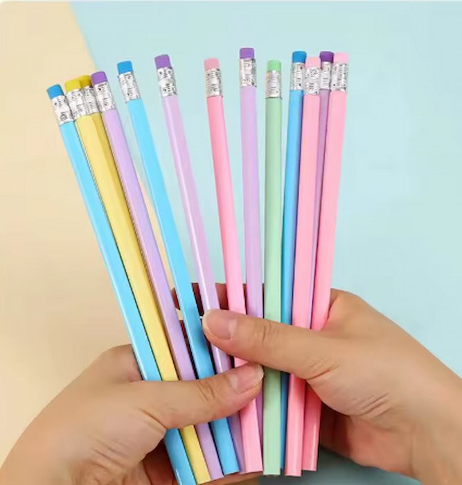Lápices de madera en tonos pastel, set de 12 piezas. Colores suaves y vibrantes, perfectos para dibujar y colorear con estilo.