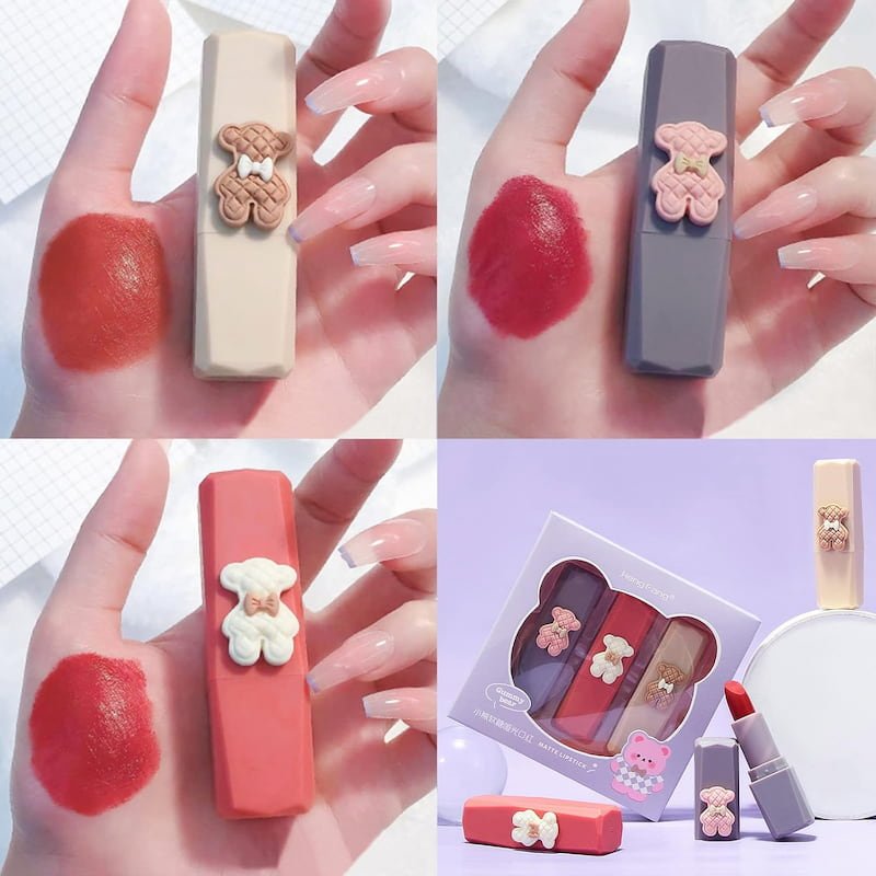 El lápiz labial mate de oso bonito garantiza una aplicación suave que desliza fácilmente sobre tus labios. Su fórmula diseñada para la comodidad diaria, no reseca y mantiene la belleza natural de tu sonrisa.