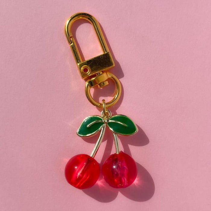 Llavero de cereza con un diseño encantador y colorido. Perfecto para darle un toque divertido y fresco a tus llaves o accesorios.