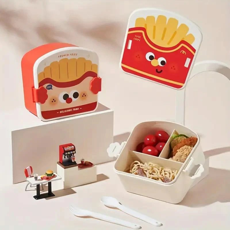 La lonchera de diseño de papas es ideal para llevar al trabajo, colegio o cualquier salida casual. Su construcción robusta y ligera la convierte en una compañera ideal para tus comidas. Además, su diseño compacto asegura que puedas llevarla en tu bolso sin ocupar mucho espacio.