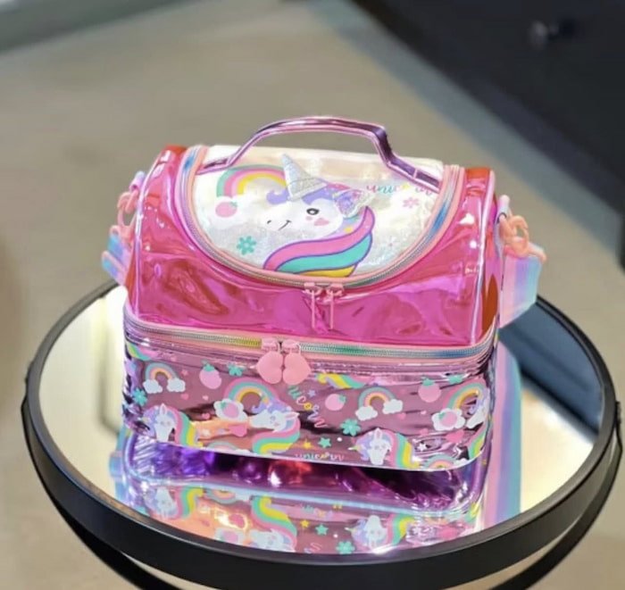 Lonchera con divertidos diseños para niñas y niños, con interior térmico que mantiene los alimentos fríos o calientes. Cuenta con dos niveles espaciosos, ideal para organizar el lonche de manera práctica y de excelente calidad.