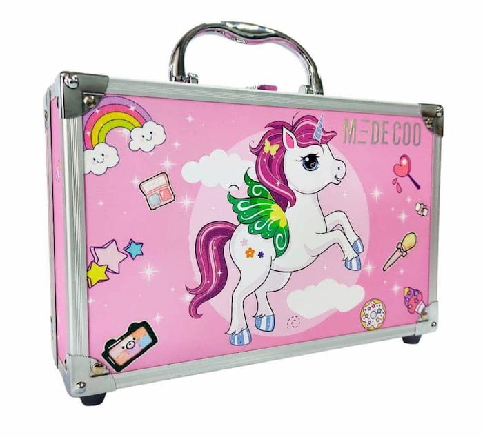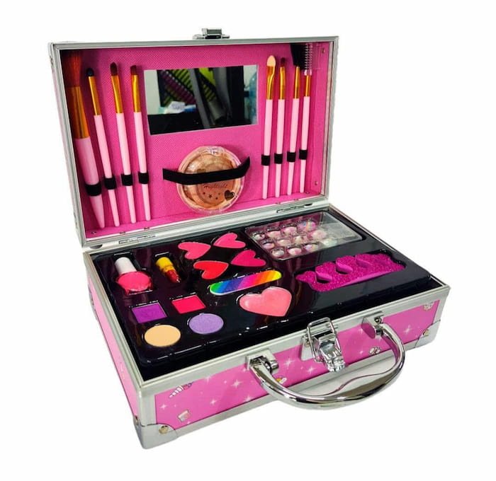 El maletín de maquillaje infantil es un set de juguete perfecto para que los más pequeños se diviertan imitando a los adultos. Incluye accesorios como pintalabios, sombras y brochas, todo en un maletín práctico y colorido, ideal para desarrollar la creatividad y el juego de roles.