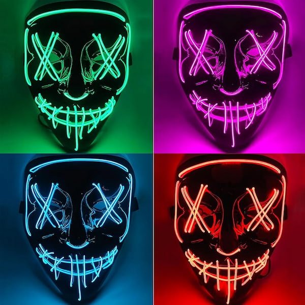 - Efectos LED: Las luces LED integradas iluminan la máscara, creando un efecto visual impresionante en la oscuridad. ¡Ideal para llamar la atención y añadir un toque extra de misterio a tu look!