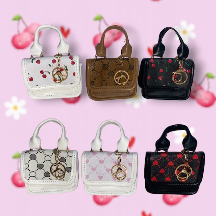 Mini bolsita con cadena para colgar, disponible en varios diseños y colores. Súper linda y de alta calidad, perfecta para un estilo único.