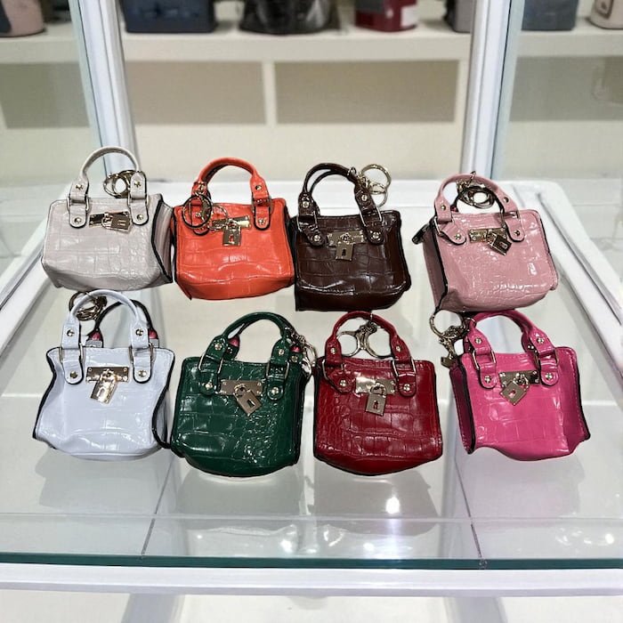 Mini bag tipo monedero, disponible en textura mate y charol, súper linda y práctica, incluye cadenita para colgar y de excelente calidad.