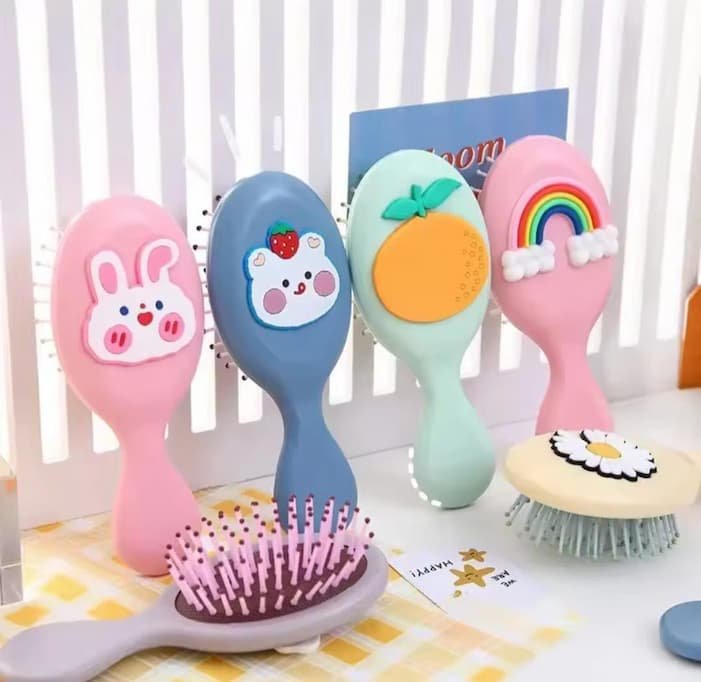 Mini cepillo kawaii infantil, compacto y colorido, diseñado especialmente para niños. Con cerdas suaves y un diseño tierno, es ideal para desenredar el cabello sin dolor ni molestias. Perfecto para llevar en la mochila y usar a diario.