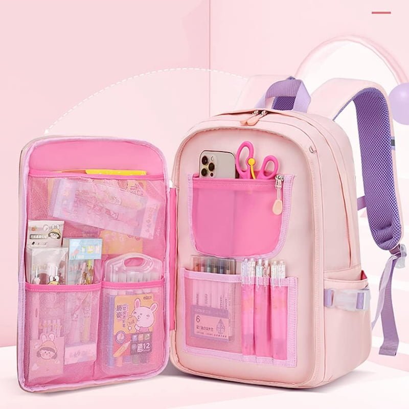 El diseño de apertura de 180 grados facilita el acceso completo al interior de la mochila, permitiendo una organización eficiente de libros, cuadernos, dispositivos electrónicos y otros artículos escolares. Además, cuenta con múltiples compartimentos y bolsillos para mantener todo en orden y al alcance fácilmente.