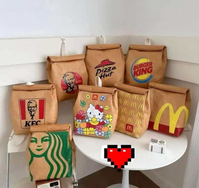Mochila Kawaii con varios diseños inspirados en sobre de cartón de marcas famosas como McDonald’s, KFC, Burger King y Pizza Hut. Divertida y original, perfecta para darle un toque único a tu estilo.