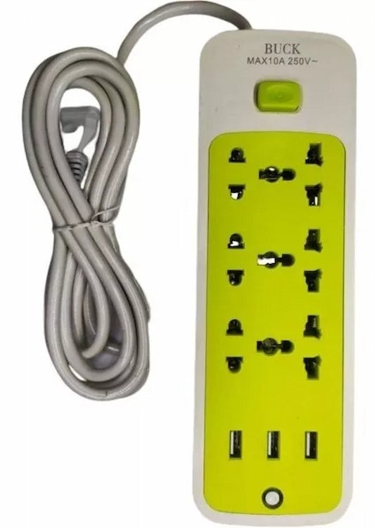 La regleta multicontacto cuenta con 6 tomas de corriente de 250V y 3 puertos USB. Ideal para conectar varios dispositivos electrónicos simultáneamente, ofrece un diseño eficiente para mantener tus aparatos cargados y alimentados. Perfecta para el hogar o la oficina, garantiza una gestión ordenada de tus conexiones eléctricas.