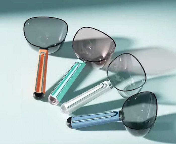 Pala para alimentos de mascotas, práctica y resistente. Ideal para servir la comida de manera limpia y precisa, facilitando la alimentación de tu mascota de forma rápida y cómoda.