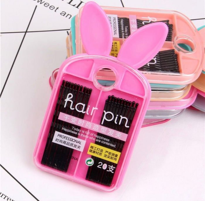 Pasadores para cabello presentados en estuche con diseño de conejito. Prácticos, adorables y perfectos para complementar cualquier peinado.